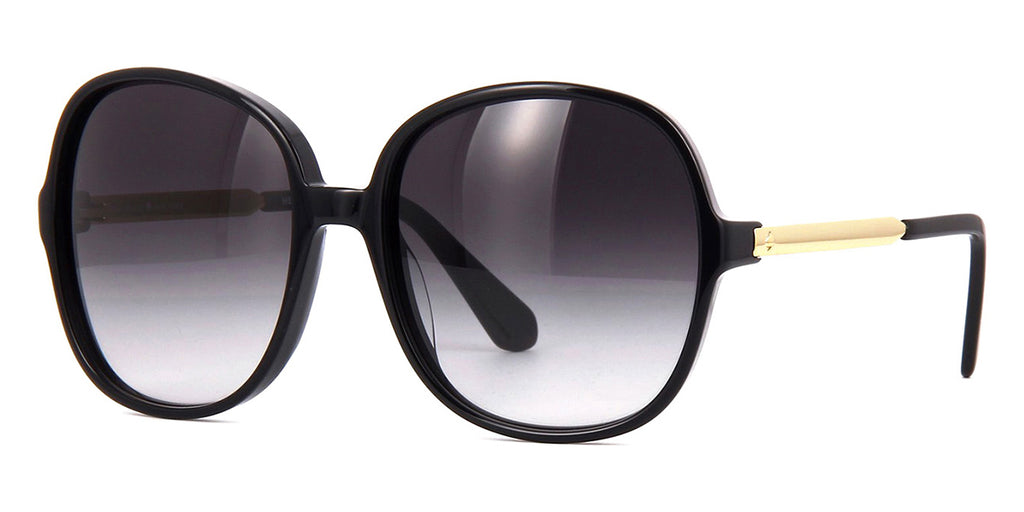 This square Kate Spade sunglass comes in a black/gold frame with grey gradient lenses.
