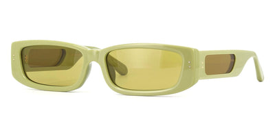 This rectangular Linda Farrow sunglass comes in a shiny pink crystal frame with grey with light mirror lenses.