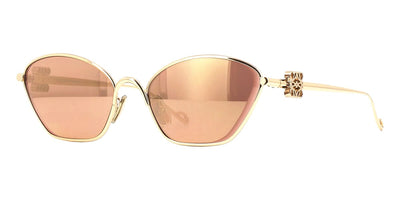 This cat eye Loewe sunglass comes in a shiny yellow gold frame with brown with yellow mirror lenses.