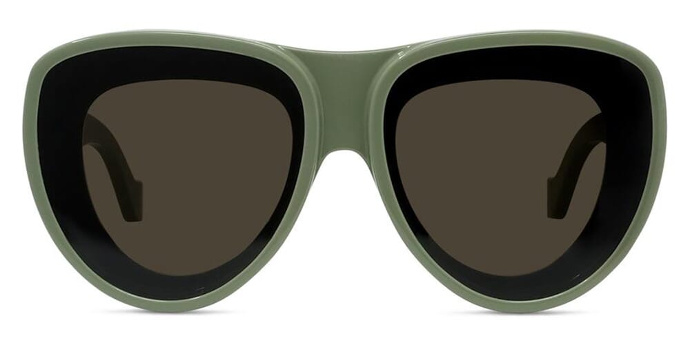 This aviator Loewe sunglass comes in a shiny green frame with brown with light mirror lenses.