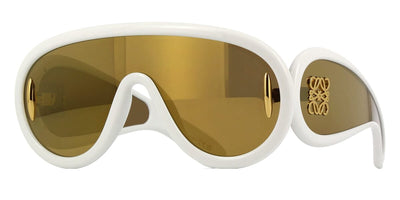 This shield Loewe sunglass comes in a grey with gold frame with grey with light gold mirror lenses.