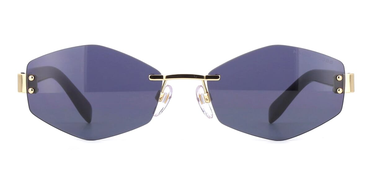 This cat eye Marc Jacobs sunglass comes in a shiny gold and black frame with grey with light mirror lenses.