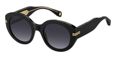 This square Marc Jacobs sunglass comes in a black with gold frame with grey gradient lenses.