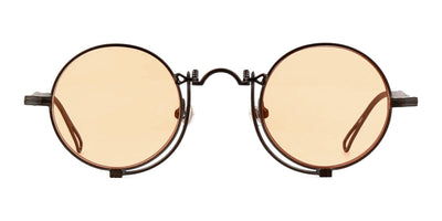 This round Matsuda sunglass comes in a matte black frame with light peach lenses.