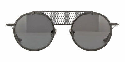 This round Matsuda sunglass comes in a matte black with mesh bridge frame with grey solid tint lenses.