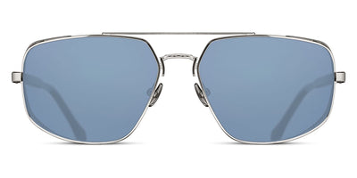 This square Matsuda sunglass comes in a brushed gold with mesh side shield frame with blue grey solid tint lenses.