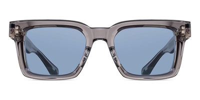 This square Matsuda sunglass comes in a shiny black and gold frame with grey with light mirror lenses.