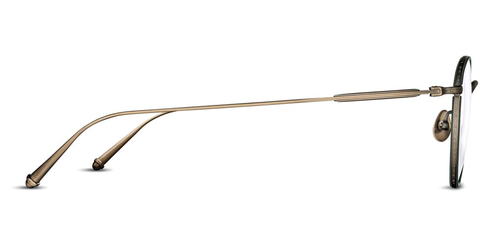 This round Matsuda optical comes in a antique gold and bottle green frame.