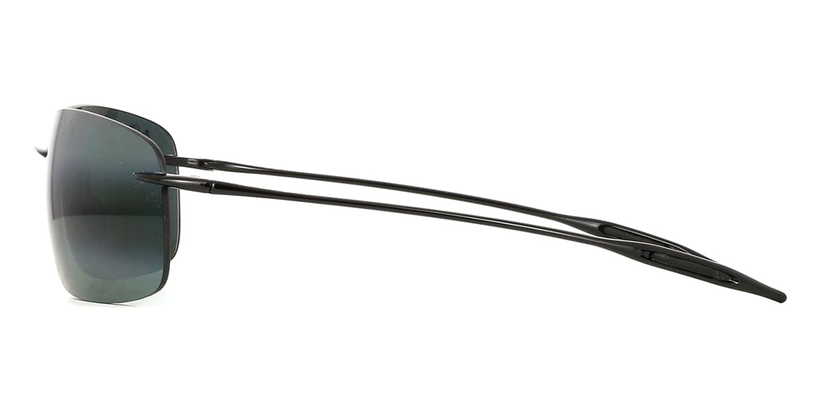 This wraparound Maui Jim sunglass comes in a shiny black frame with neutral grey maui pure lenses.