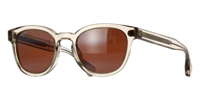 This round Maui Jim sunglass comes in a translucent dove grey frame with blue hawaii maui brilliant lenses.