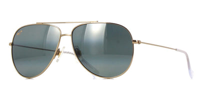 This aviator Maui Jim sunglass comes in a shiny silver with blue and green frame with blue hawaii maui pure lenses.