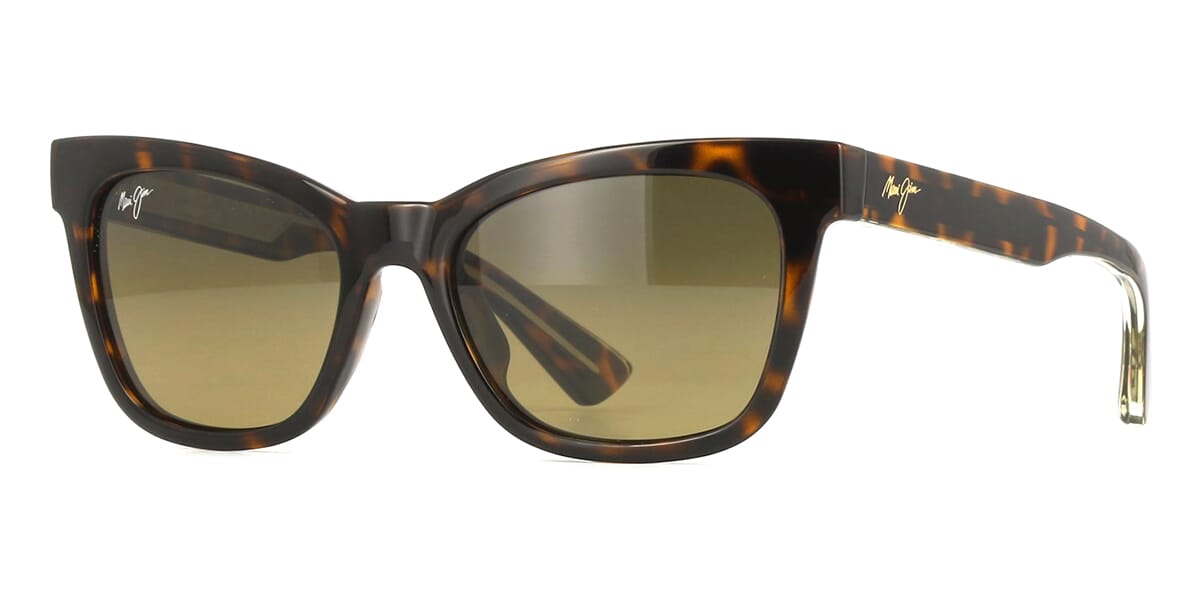 This square Maui Jim sunglass comes in a shiny dark havana frame with hcl bronze super thin glass lenses.