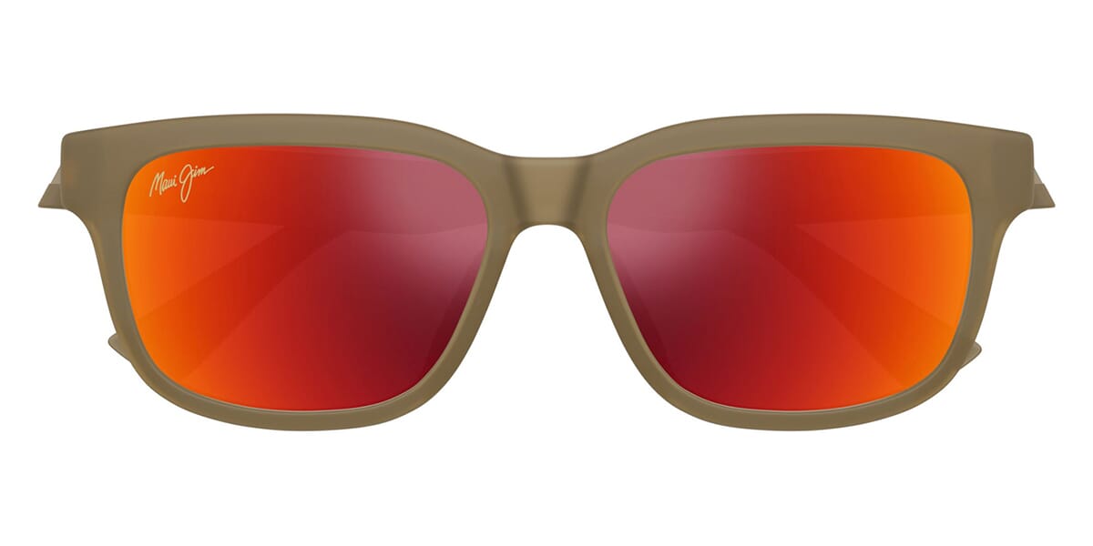 This square Maui Jim sunglass comes in a matte transparent sand brown frame with maui pure hawaii lava lenses.