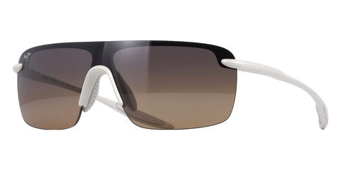 This shield Maui Jim sunglass comes in a metal matte platinum frame with hcl bronze maui brilliant lenses.