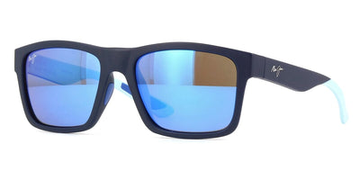 This square Maui Jim sunglass comes in a matte black and blue frame with blue hawaii super thin glass lenses.