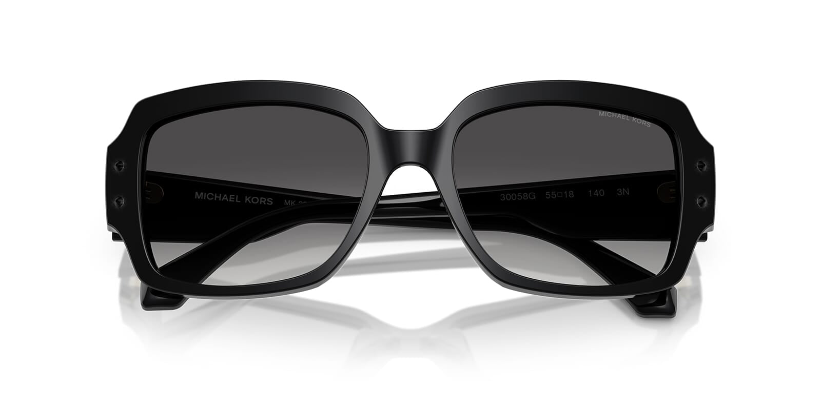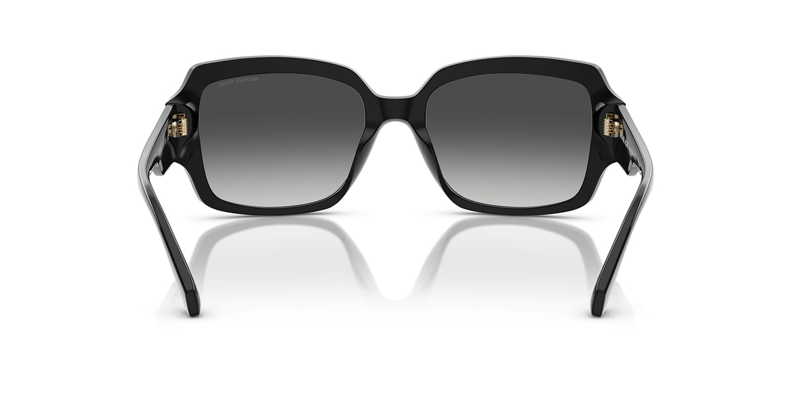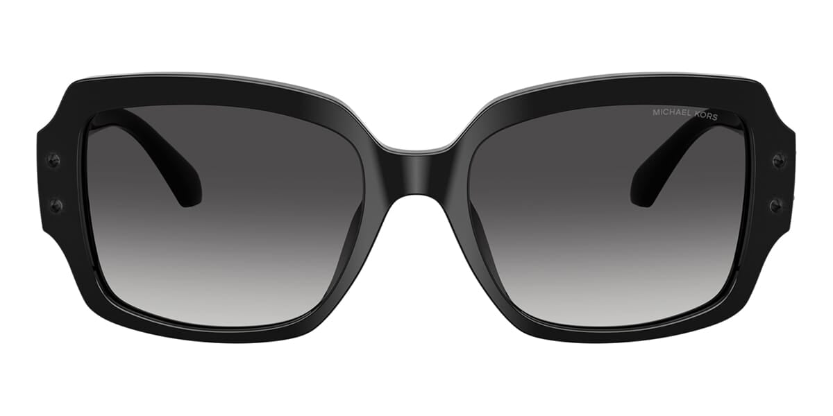 This square Michael Kors sunglass comes in a black frame with dark grey gradient lenses.
