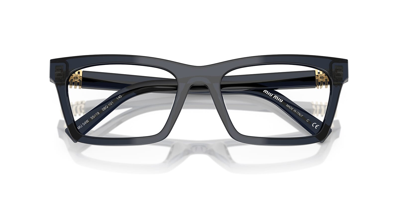 This rectangular Miu Miu optical comes in a blue crystal frame.