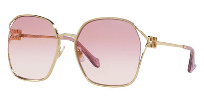 This square Miu Miu sunglass comes in a brass frame with brown gradient lenses.