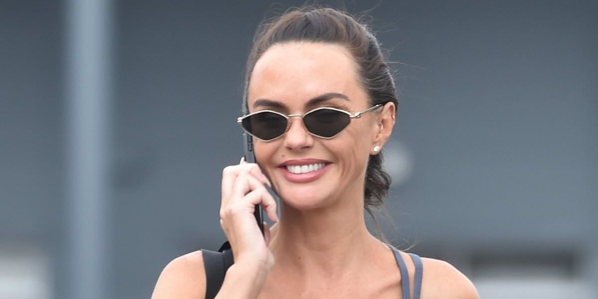 This rectangular Miu Miu sunglass comes in a pale gold frame with dark grey lenses.