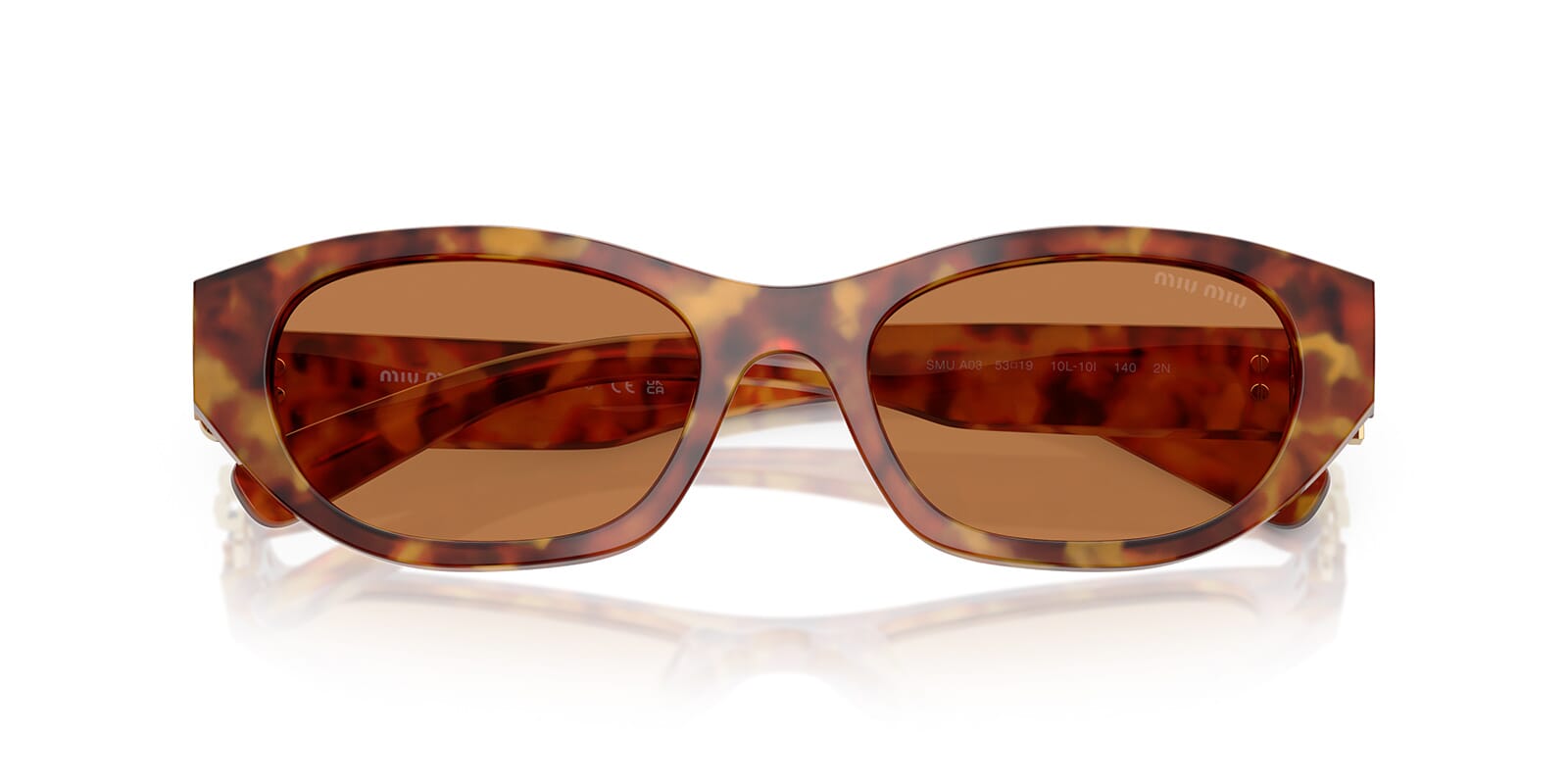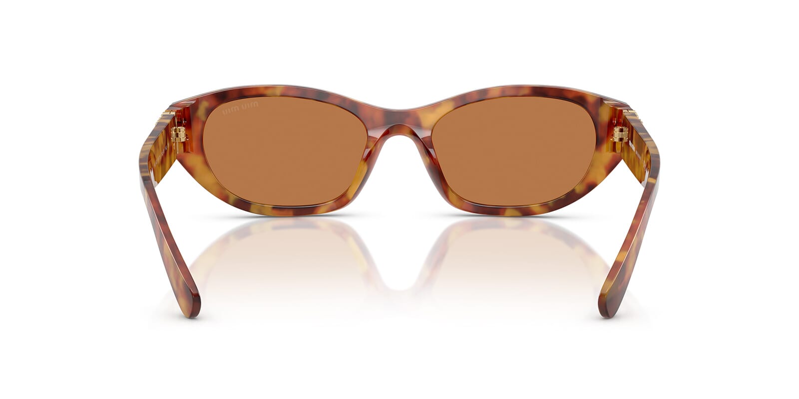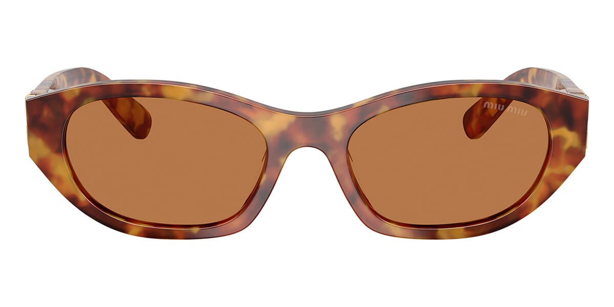 This rectangular Miu Miu sunglass comes in a havana light frame with brown lenses.