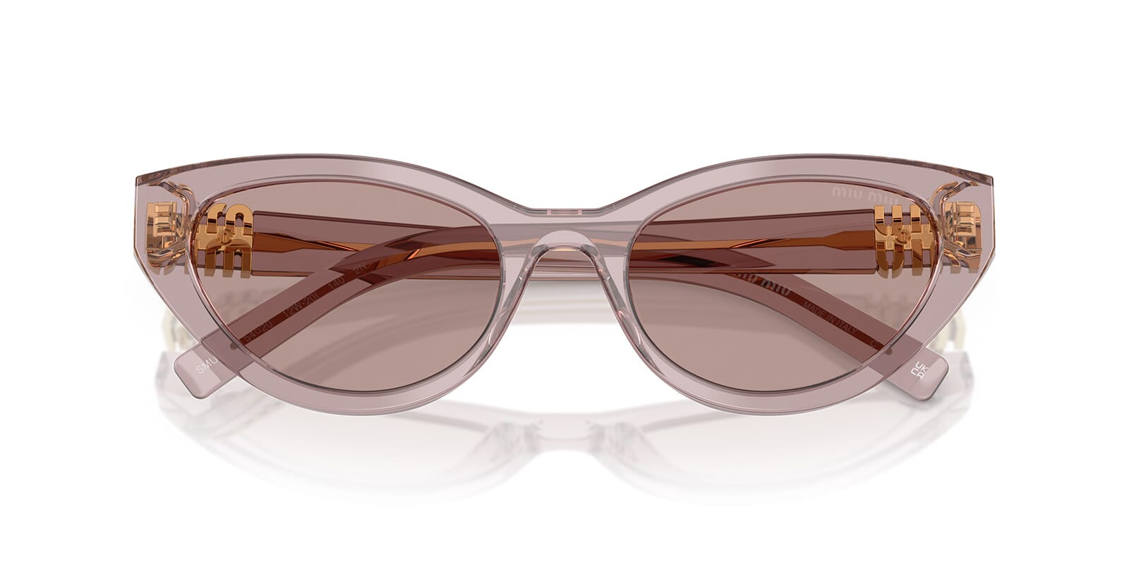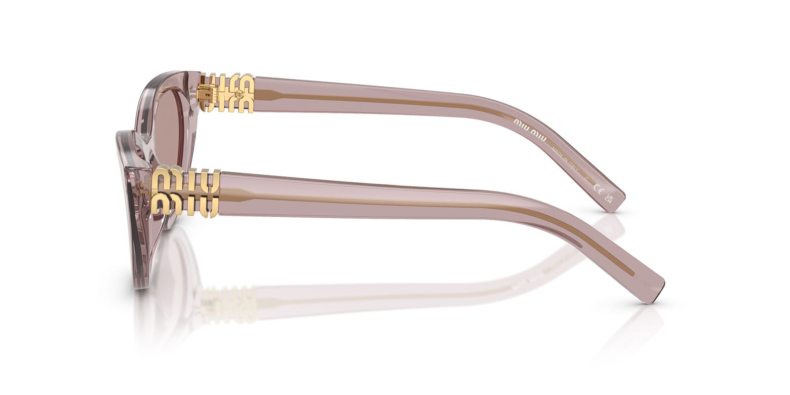 This butterfly Miu Miu sunglass comes in a mauve crystal frame with light purple brown lenses.