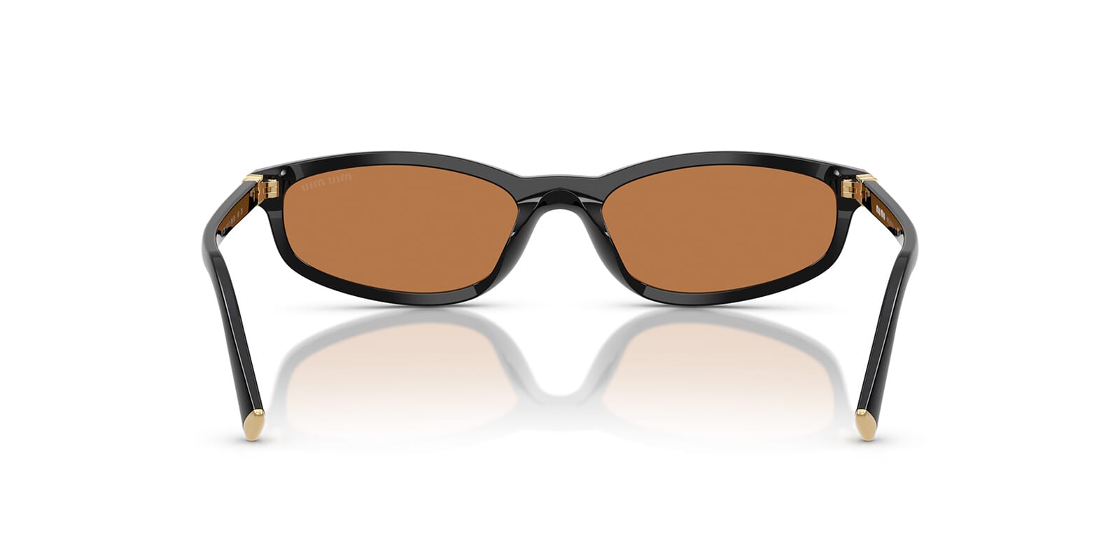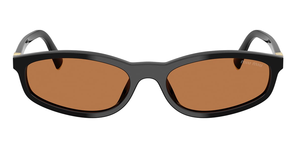 This rectangular Miu Miu sunglass comes in a black frame with brown lenses.