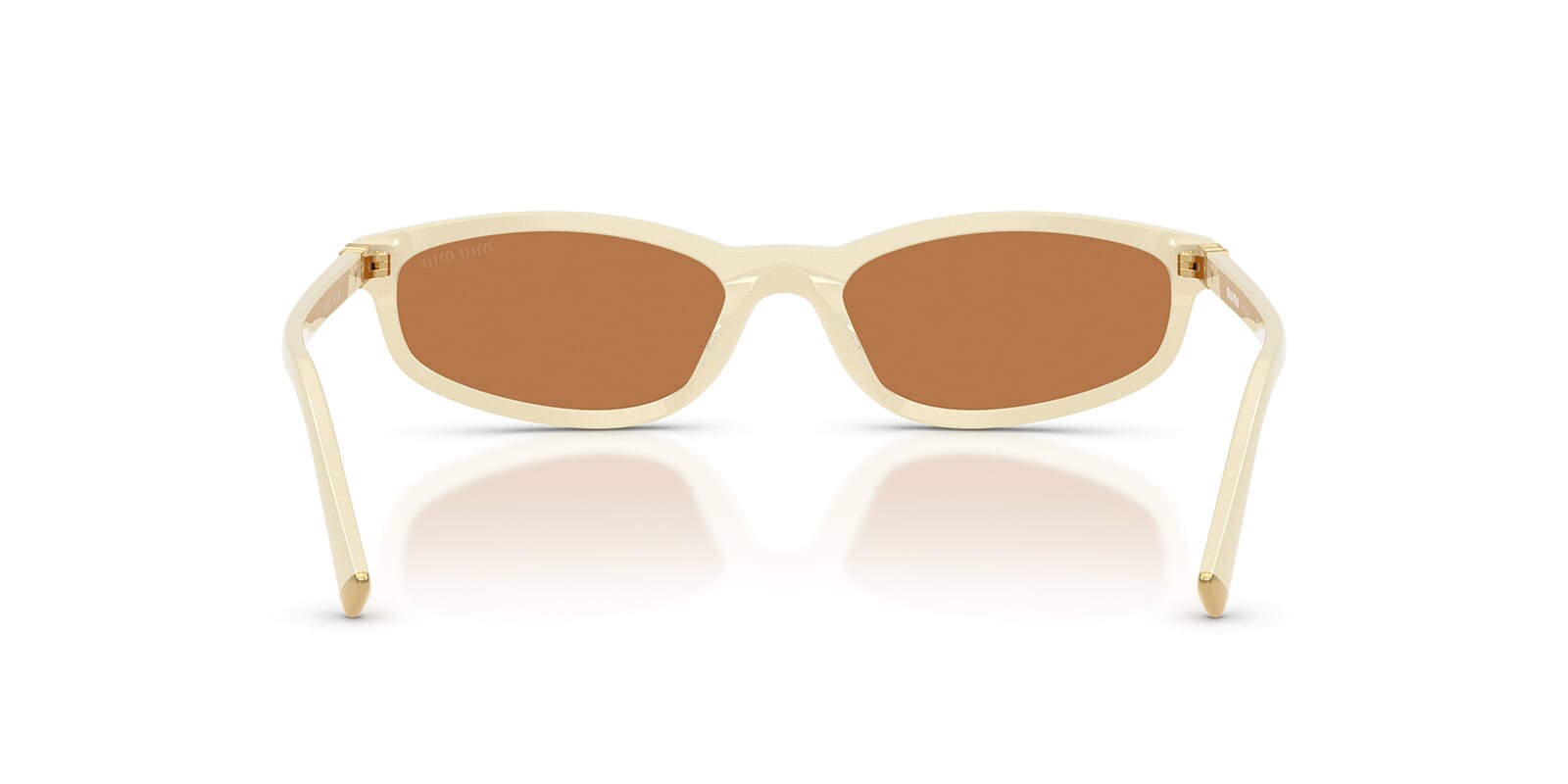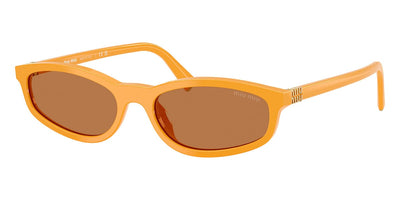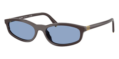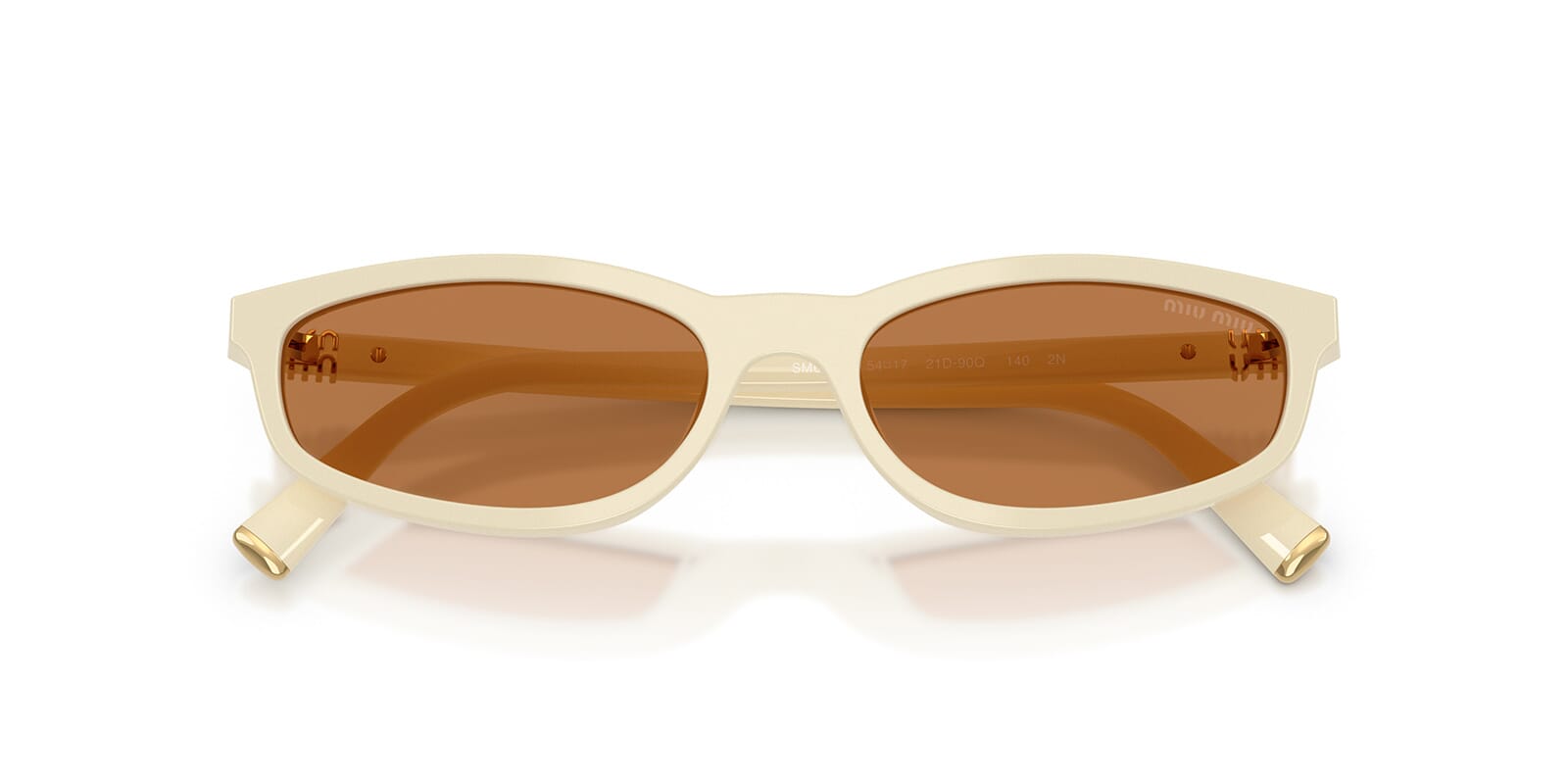 This rectangular Miu Miu sunglass comes in a milk frame with brown lenses.
