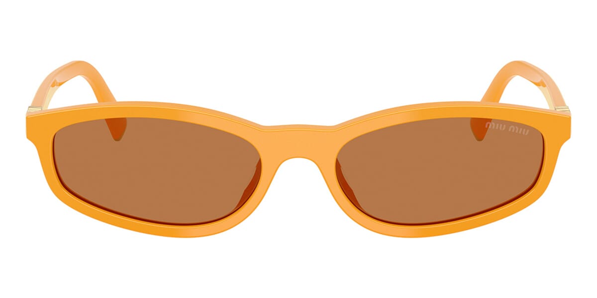 This rectangular Miu Miu sunglass comes in a soleil frame with brown lenses.