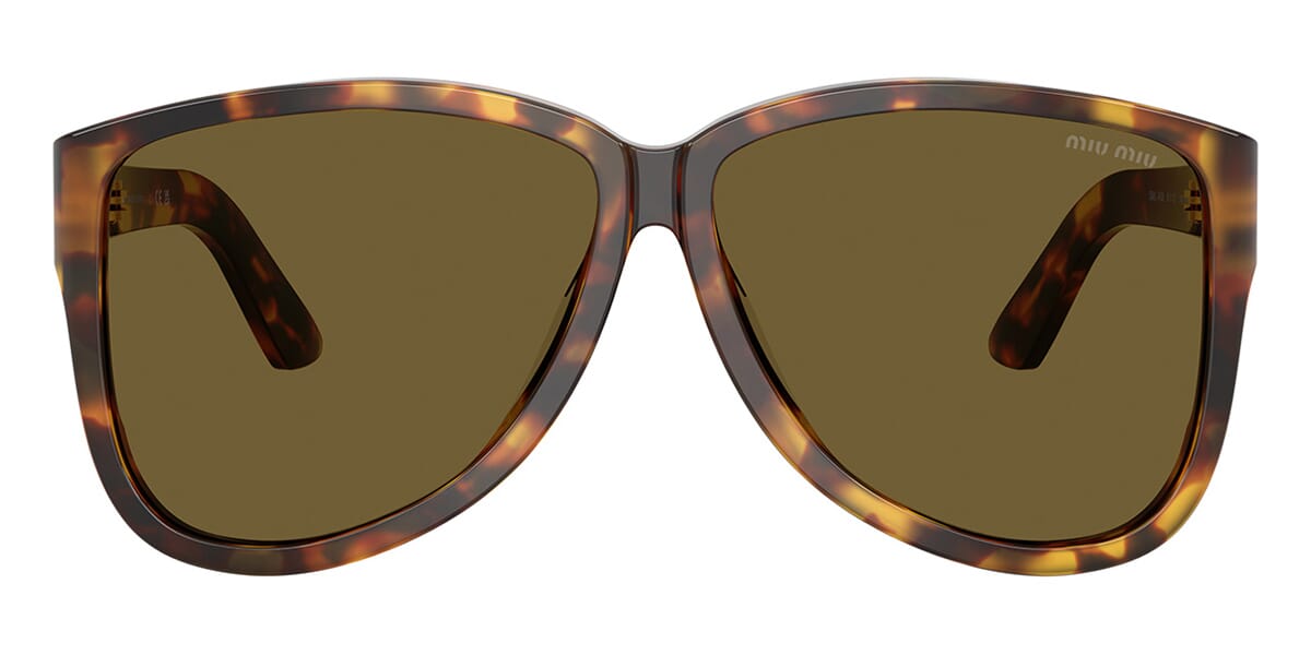 This aviator Miu Miu sunglass comes in a honey havana frame with dark brown lenses.