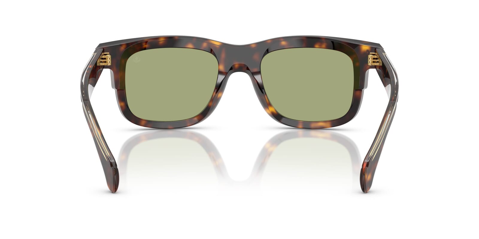 This square Moncler sunglass comes in a brown tortoise frame with green lenses.