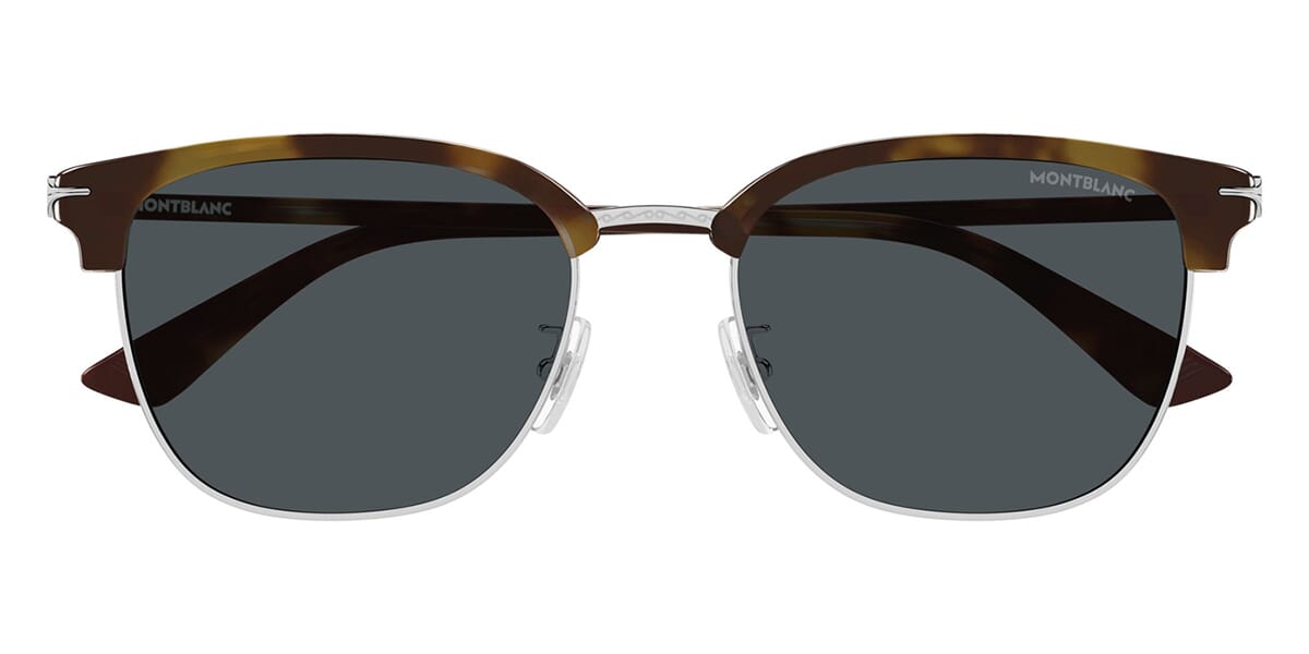 This square Mont Blanc sunglass comes in a shiny dark havana on silver frame with grey with light mirror lenses.