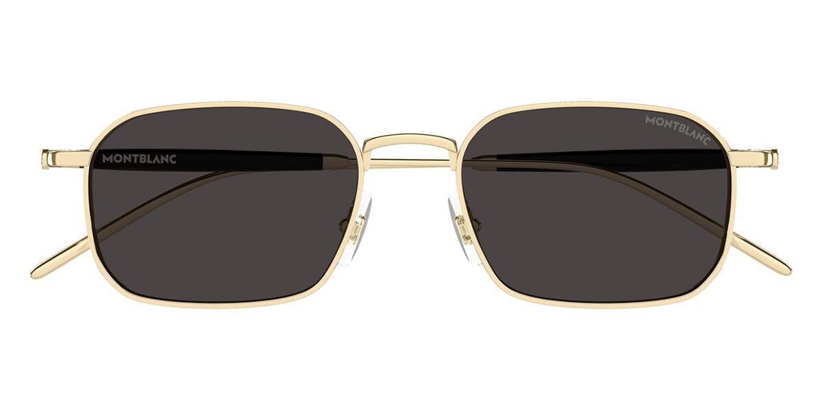 This square Mont Blanc sunglass comes in a shiny gold frame with grey with light mirror lenses.