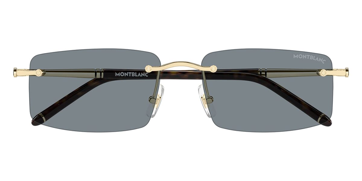 This rectangular Mont Blanc sunglass comes in a shiny gold frame with grey with light mirror lenses.
