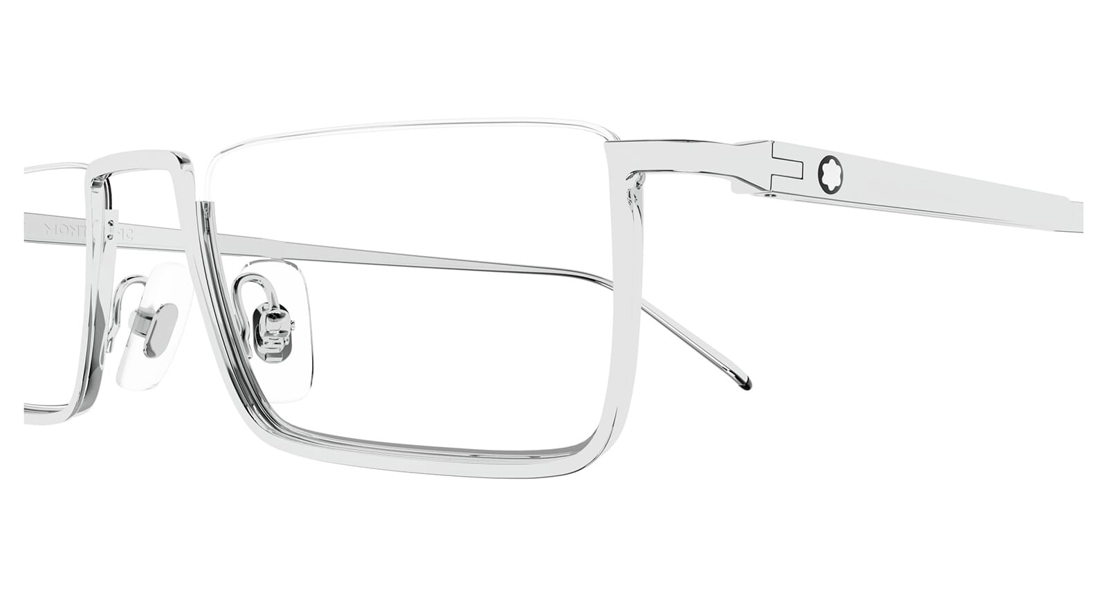 This square Mont Blanc optical comes in a shiny silver frame.