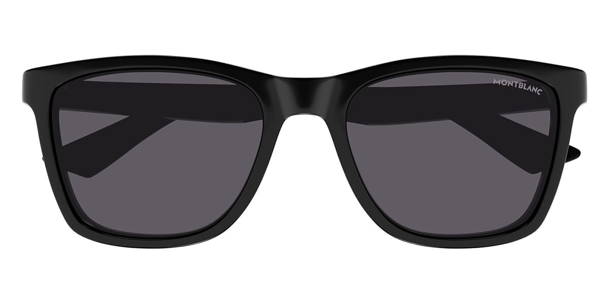 This square Mont Blanc sunglass comes in a black frame with grey lenses.