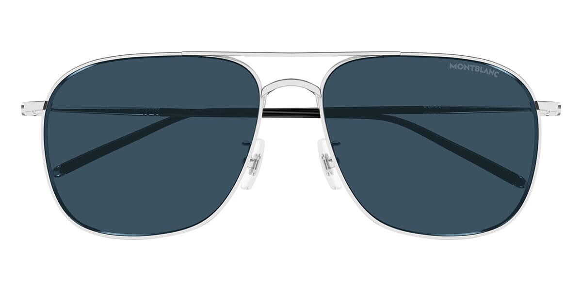 This aviator Mont Blanc sunglass comes in a silver frame with blue lenses.