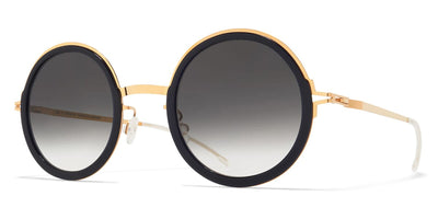 This round Mykita sunglass comes in a champagne gold with clear ash grey frame with grey gradient lenses.