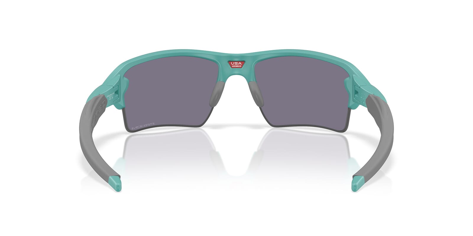 This rectangular Oakley sunglass comes in a matte pacific frame with prizm grey lenses.