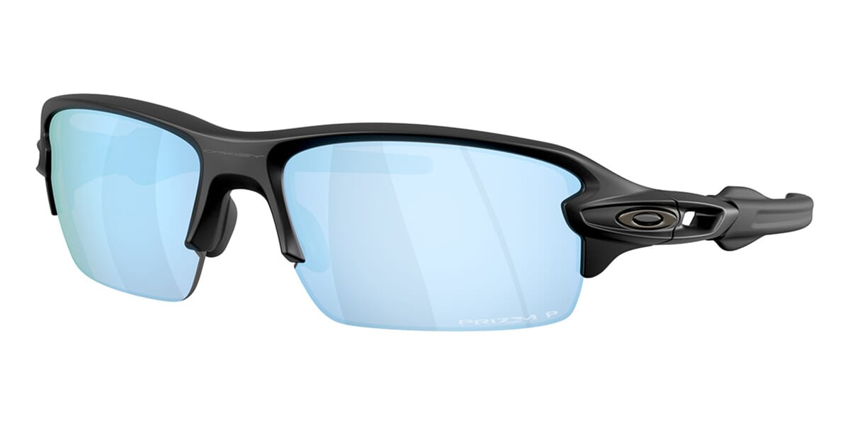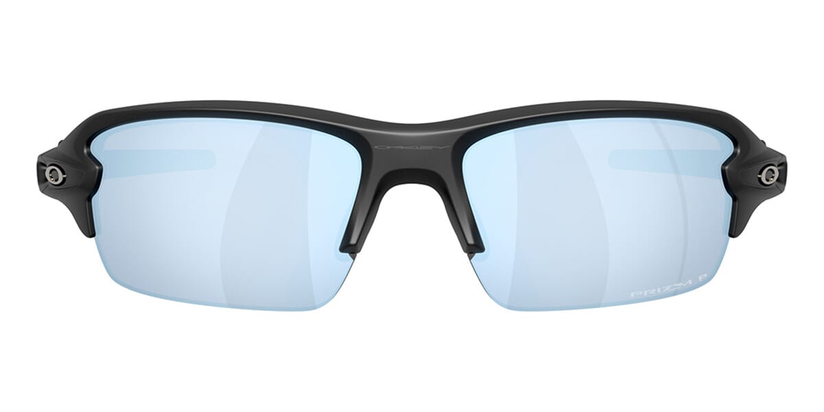 This rectangular Oakley sunglass comes in a matte black frame with prizm deep water polarised lenses.