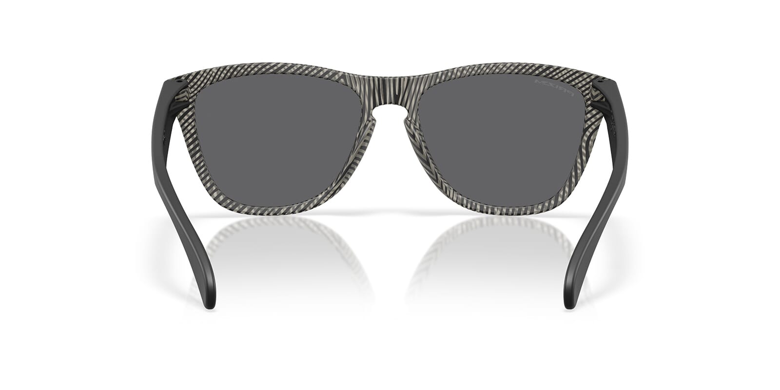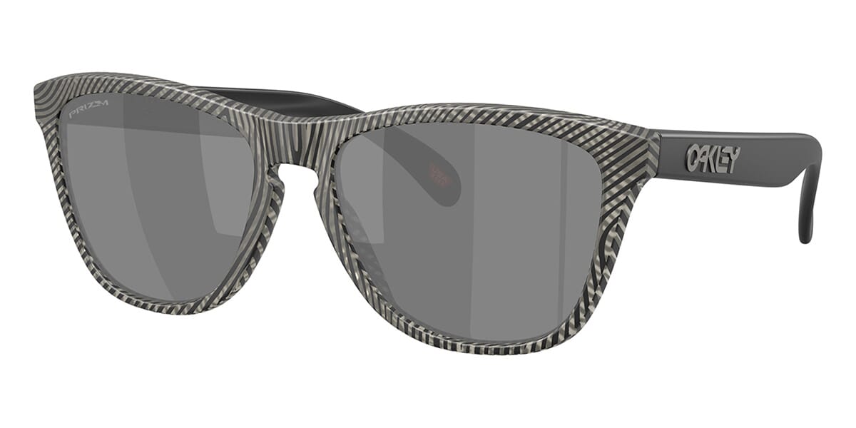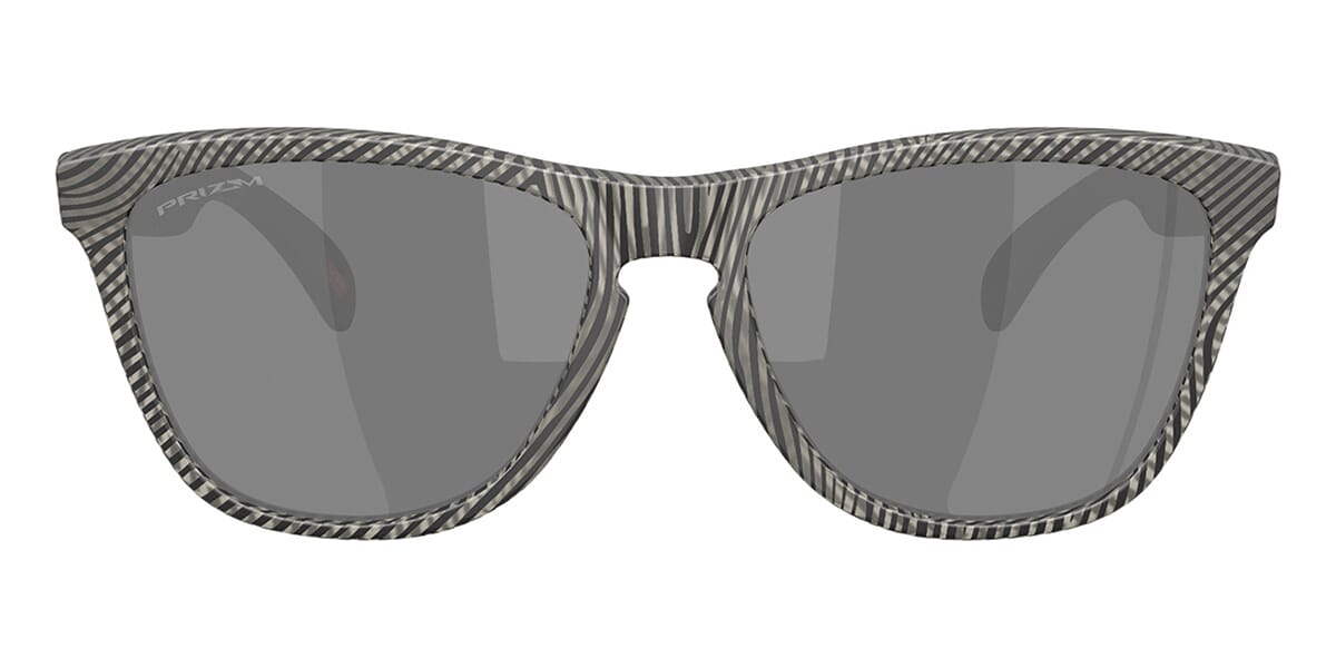 This square Oakley sunglass comes in a matte grey ink fingerprint frame with prizm black lenses.