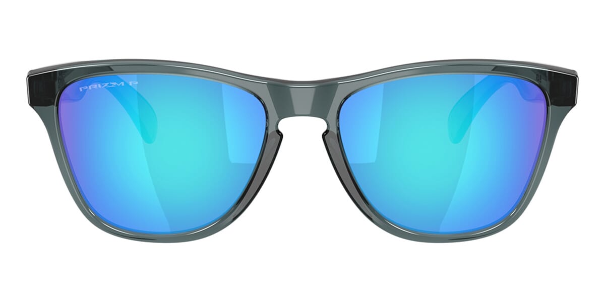 This round Oakley sunglass comes in a crystal black frame with prizm sapphire polarised lenses.