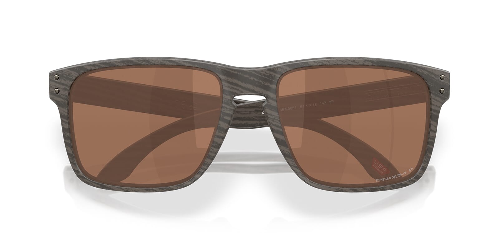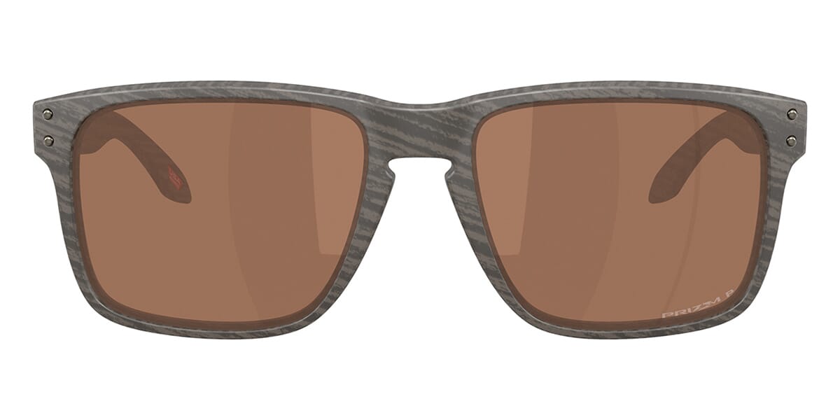 This rectangular Oakley sunglass comes in a woodgrain frame with prizm tungsten polarised lenses.