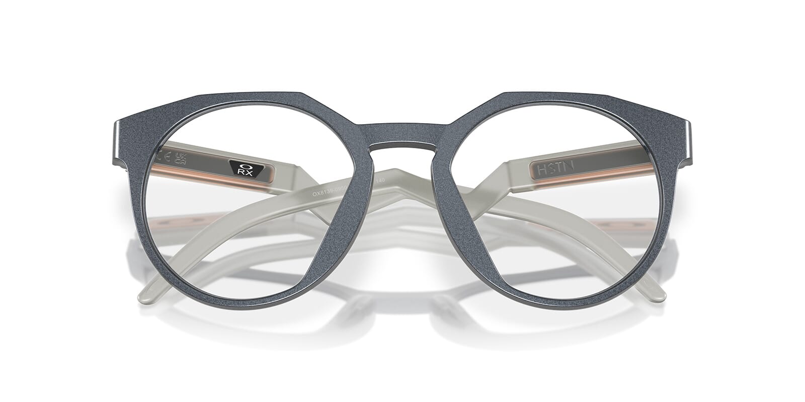This round Oakley optical comes in a matte blue steel frame.
