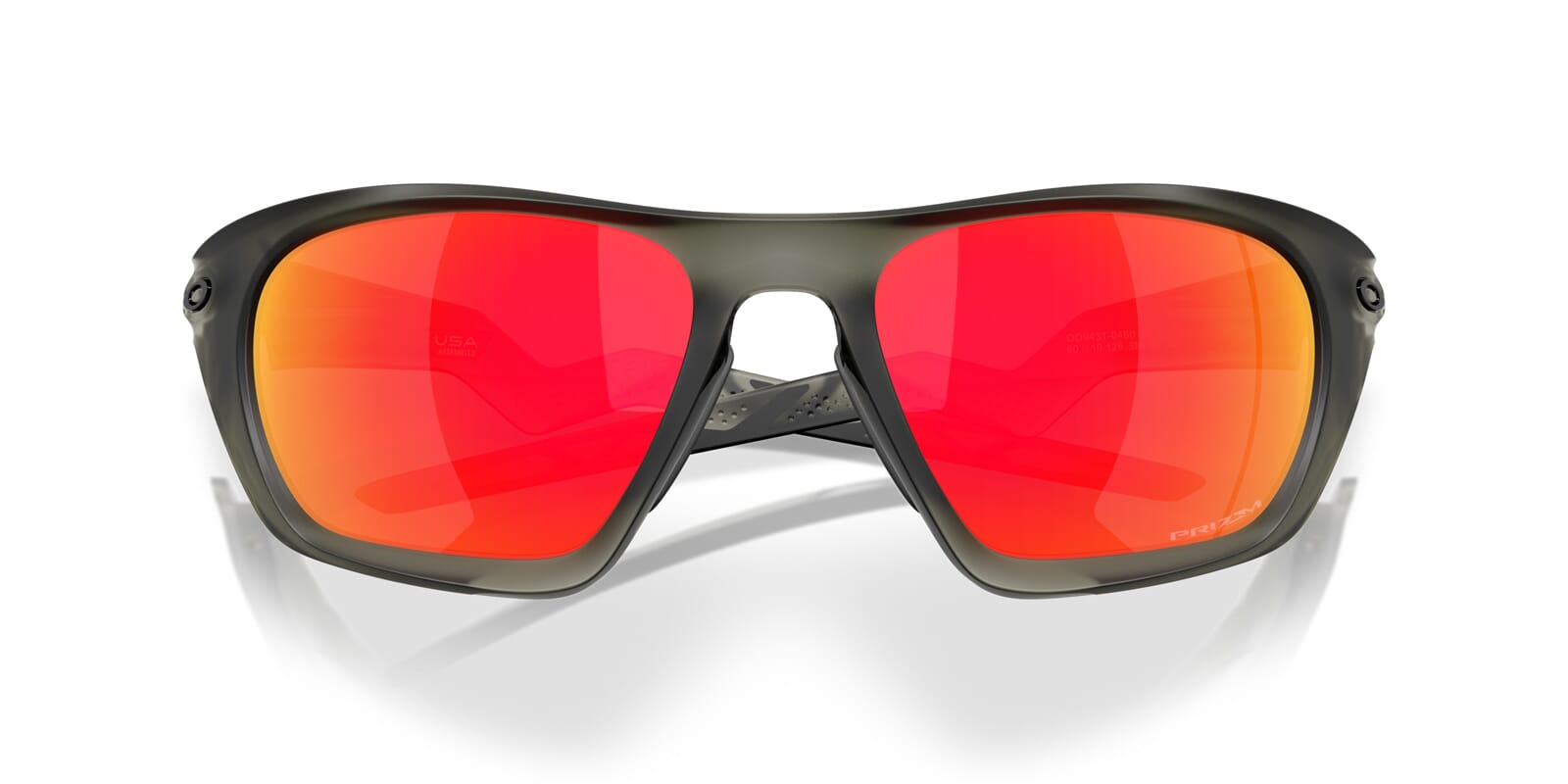This rectangular Oakley sunglass comes in a matte olive ink frame with prizm ruby lenses.