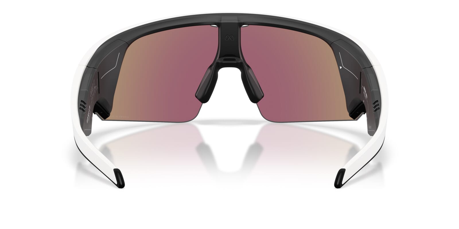This shield Oakley sunglass comes in a white frame with prizm sapphire lenses.
