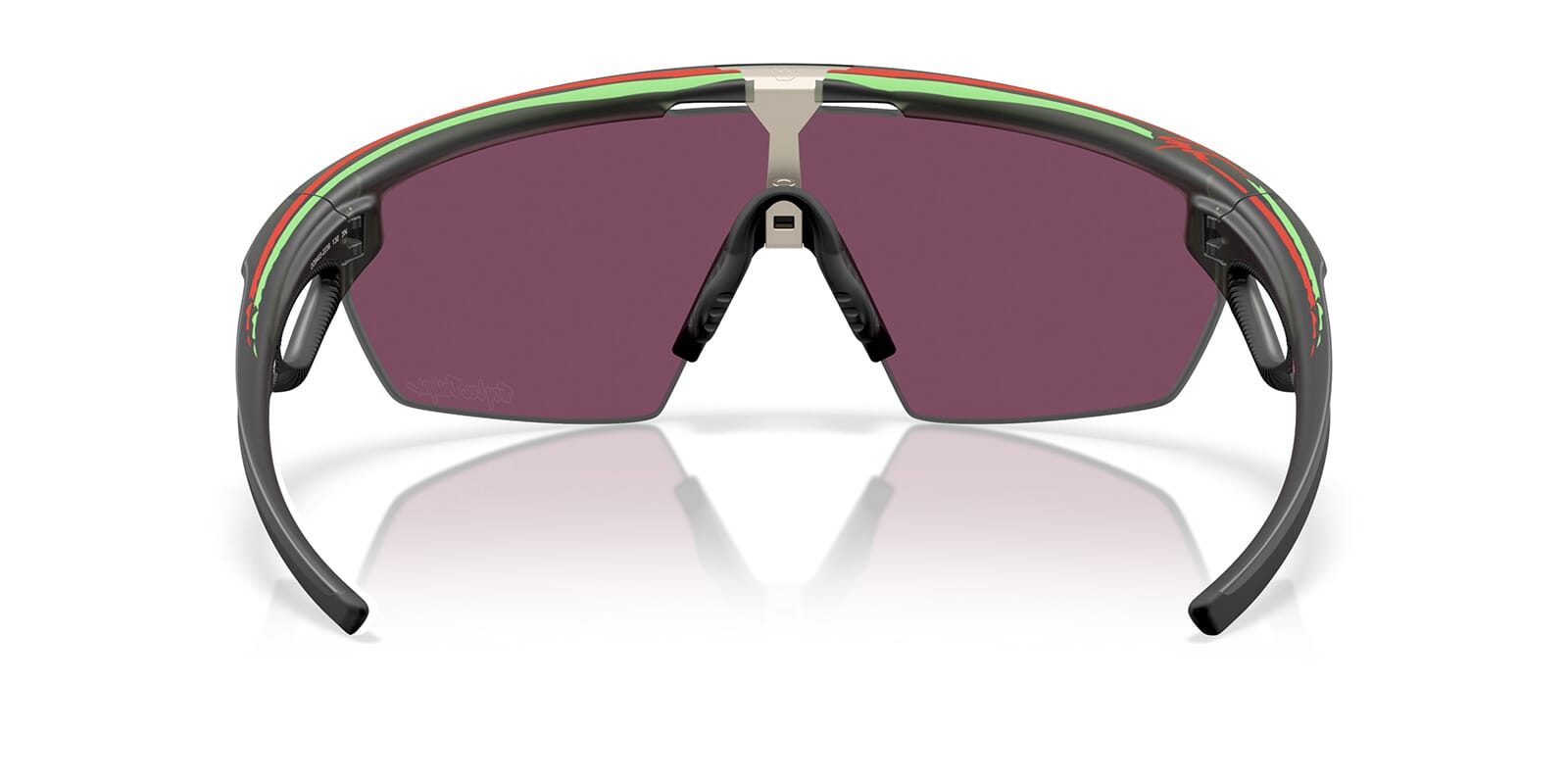 This rectangular Oakley sunglass comes in a troy lee designs matte olive ink frame with prizm road black lenses.