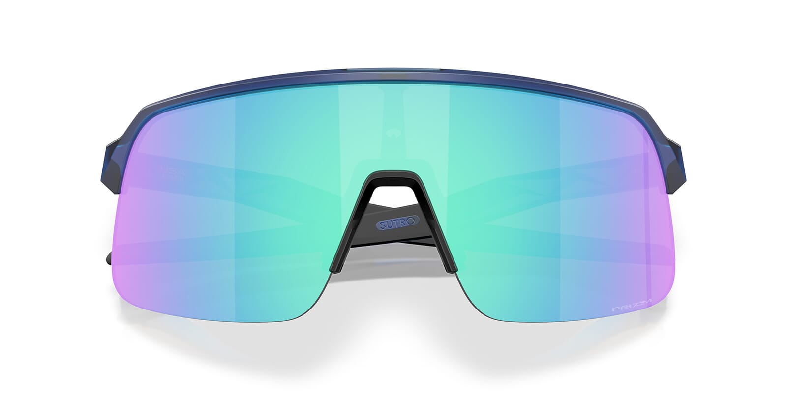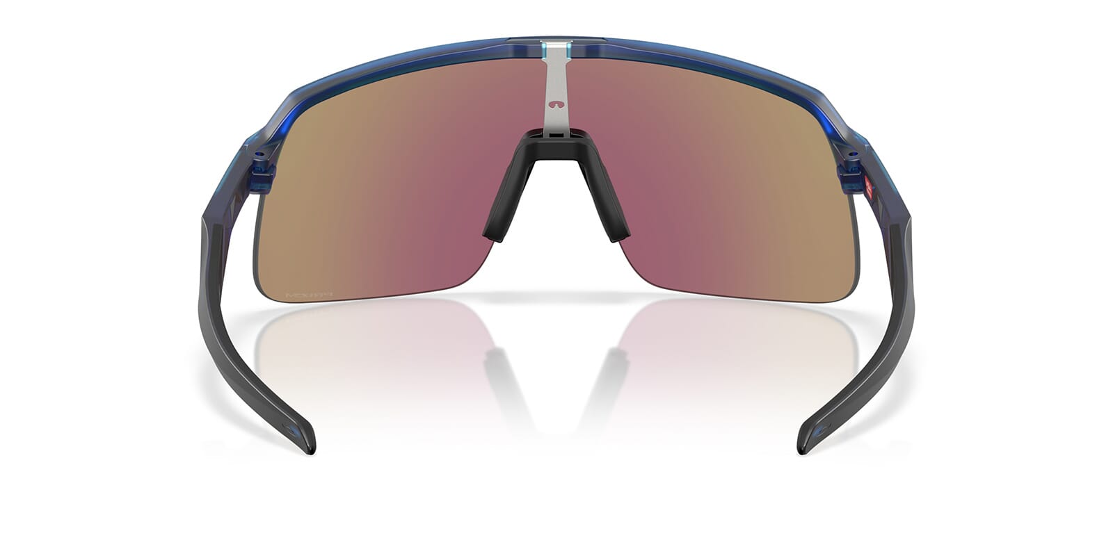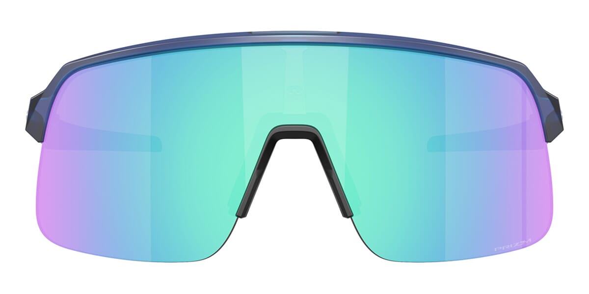 This rectangular Oakley sunglass comes in a matte transparent blue frame with prizm sapphire lenses.
