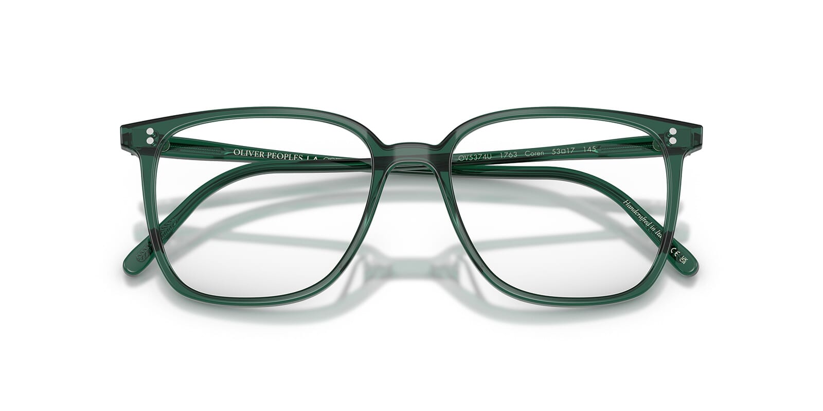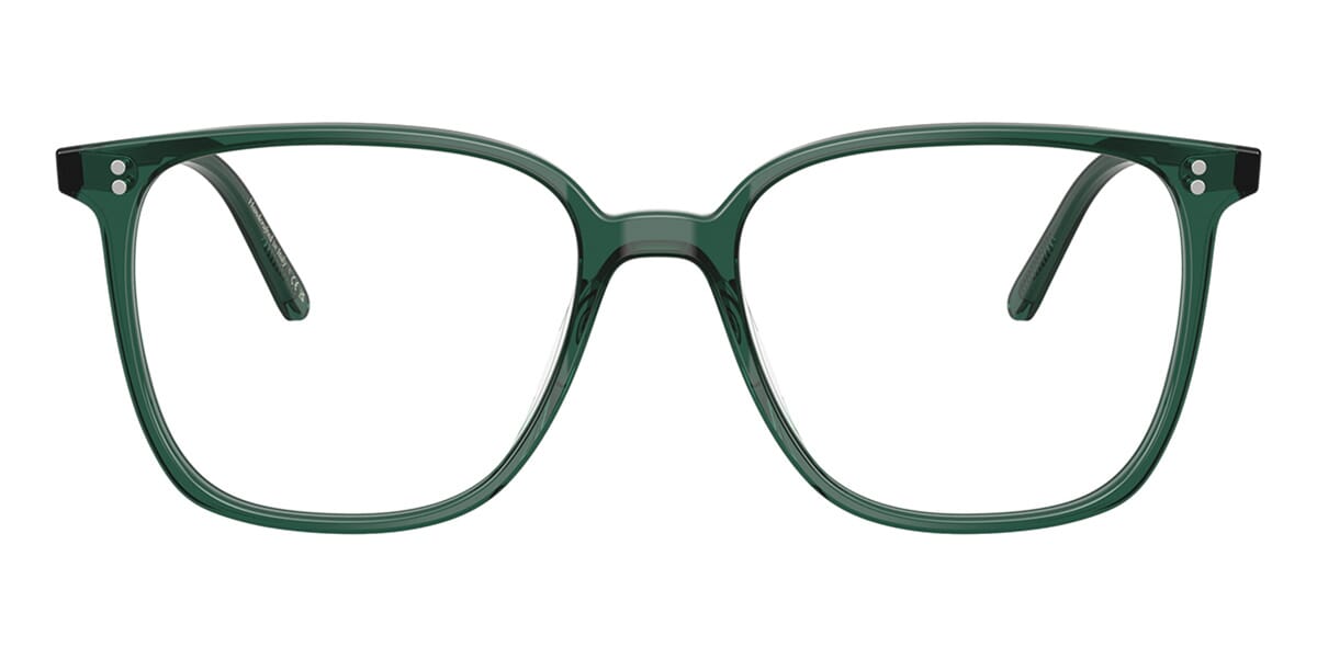 This square Oliver Peoples optical comes in a translucent dark teal frame.