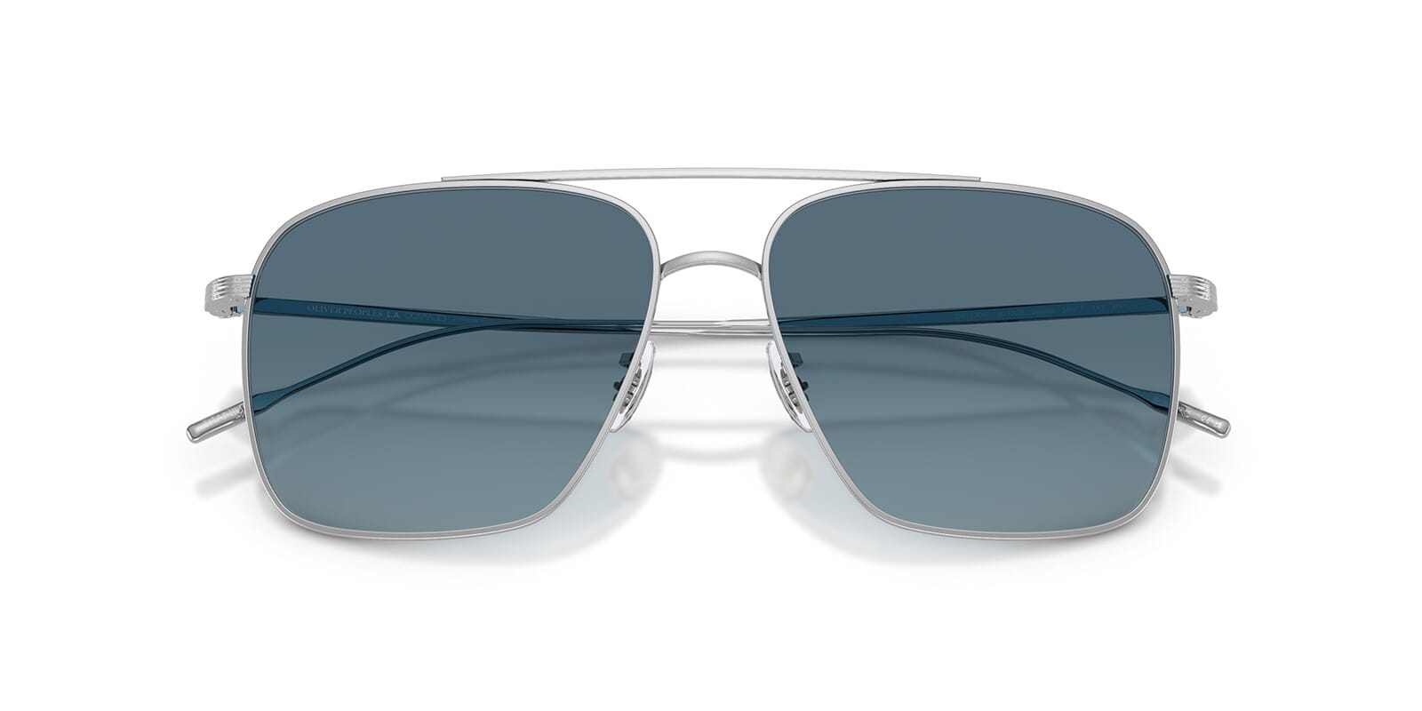 This aviator Oliver Peoples sunglass comes in a silver frame with marine gradient lenses.