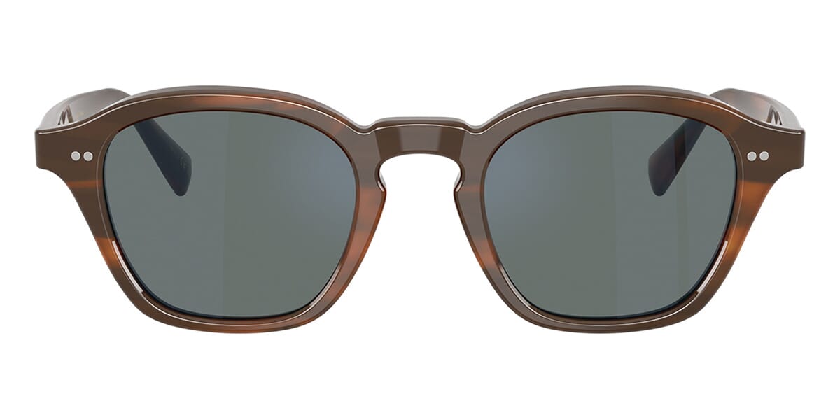 This square Oliver Peoples sunglass comes in a sycamore frame with regal blue lenses.